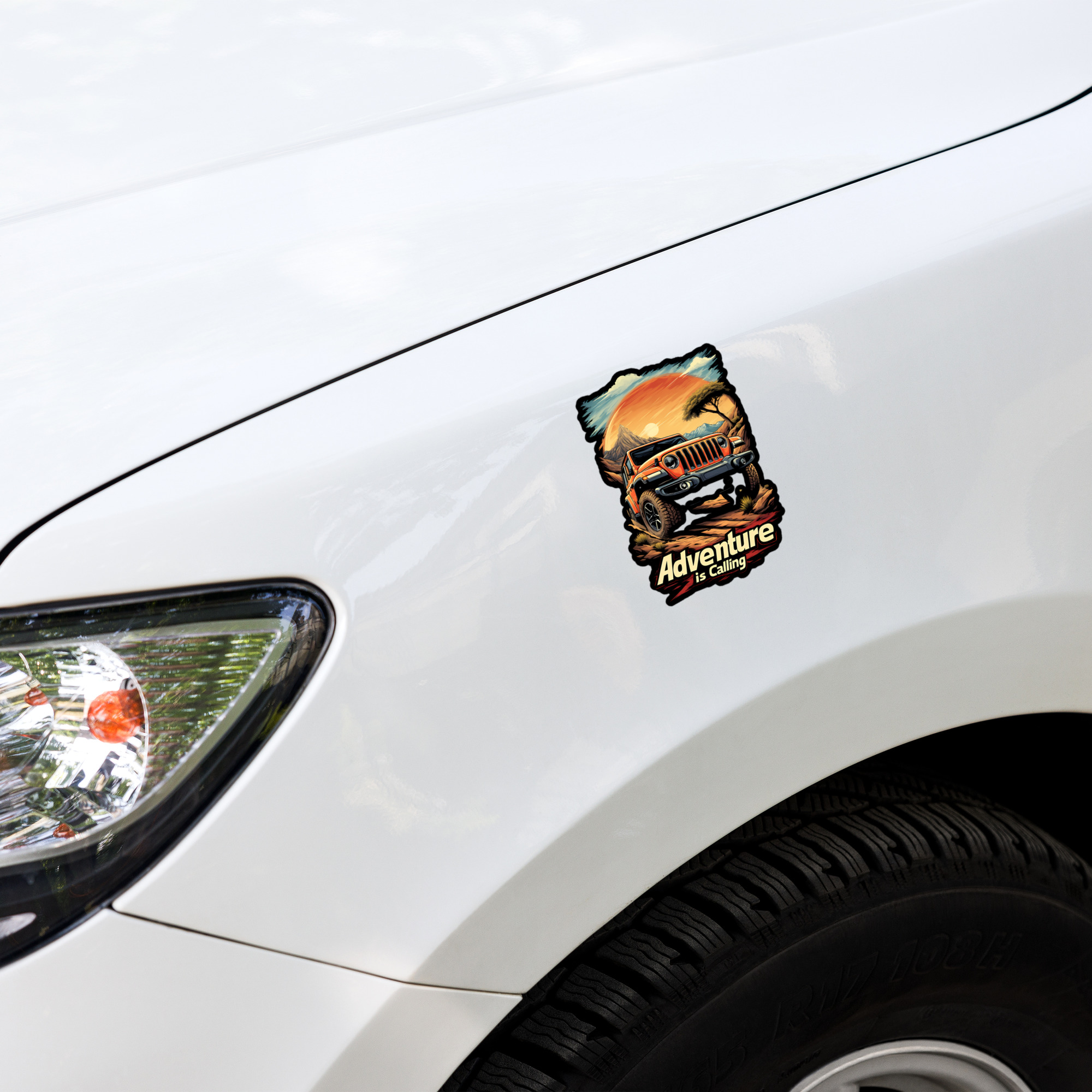 Your gear should tell the story of where you have conquered. The Safari Off-Road Graphic Sticker is built for those who know that true freedom lies where Adventure is Calling. Featuring a beautifully stylized, dynamic orange off-road rig conquering a rocky path, set against a giant retro sun and classic savanna tree. This bold decal speaks to the true trailblazer. Whether you are plastering it on your rig’s bumper, your heavy-duty cooler, or your rugged travel laptop, this piece connects you instantly to the raw, unfiltered safari overlanding lifestyle.