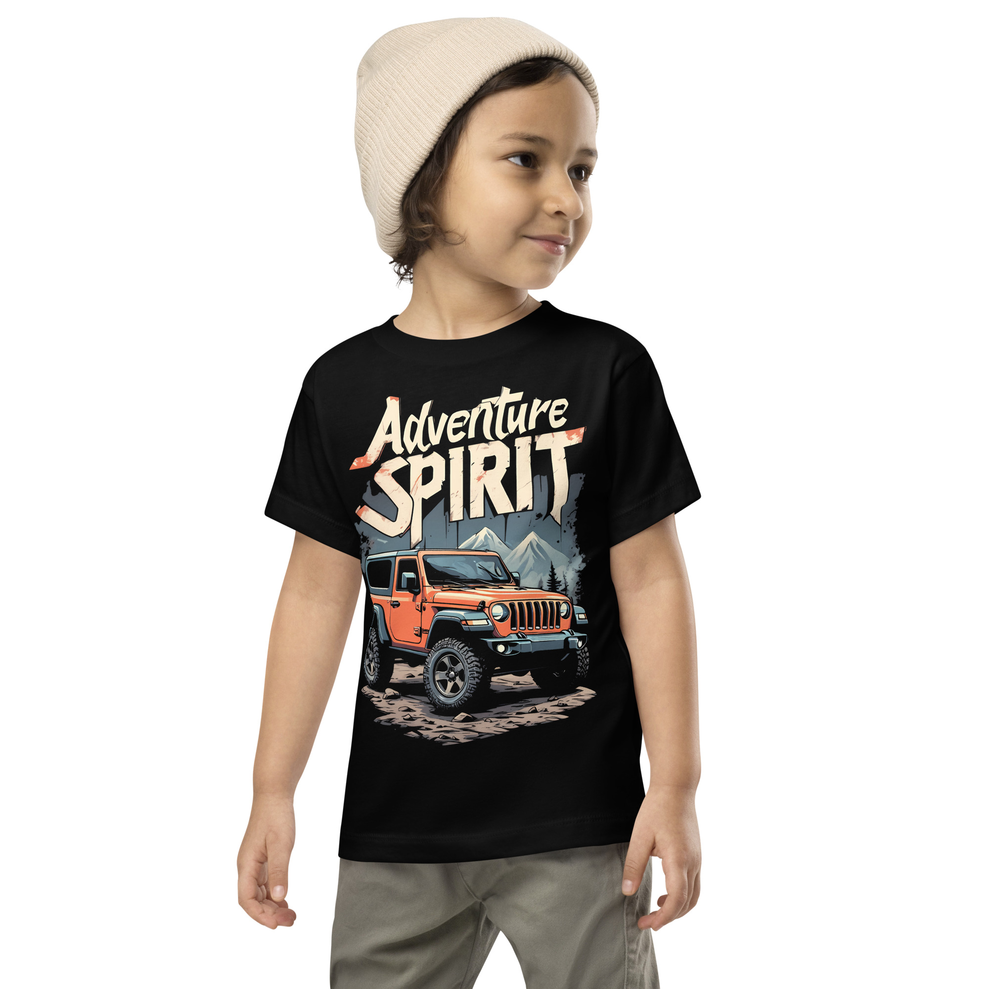 This striking apparel seamlessly merges bold cinematic aesthetics with cute, rugged durability. Pair it easily with their favorite little denim jeans or play shorts. The highly breathable, naturally sourced cotton fabric ensures they remain completely cool. The aggressive Adventure Spirit slogan makes for amazing family trail photos.