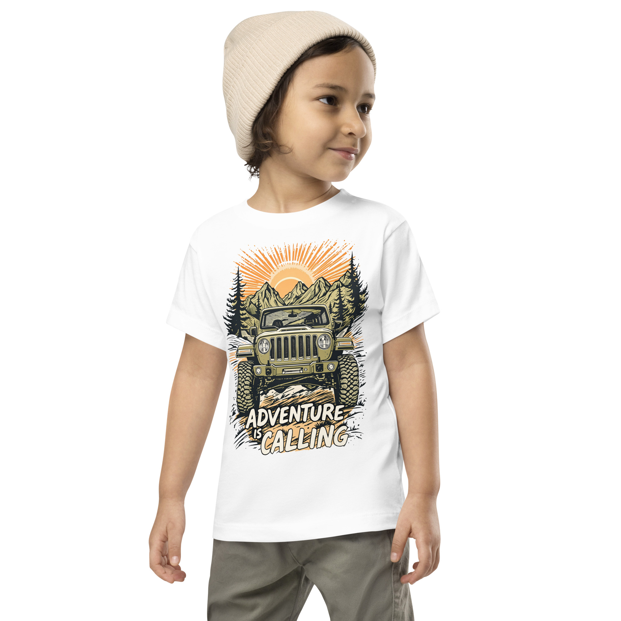 This striking apparel seamlessly merges vintage outdoor aesthetics with cute, rugged durability. Pair it easily with their favorite little denim jeans or play shorts. The highly breathable, naturally sourced cotton fabric ensures they remain completely cool. The classic Adventure is Calling slogan makes for amazing family trail photos.