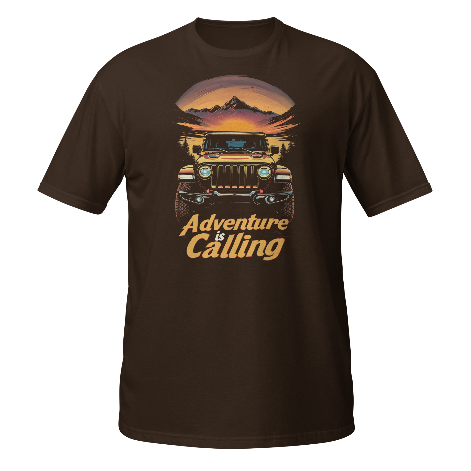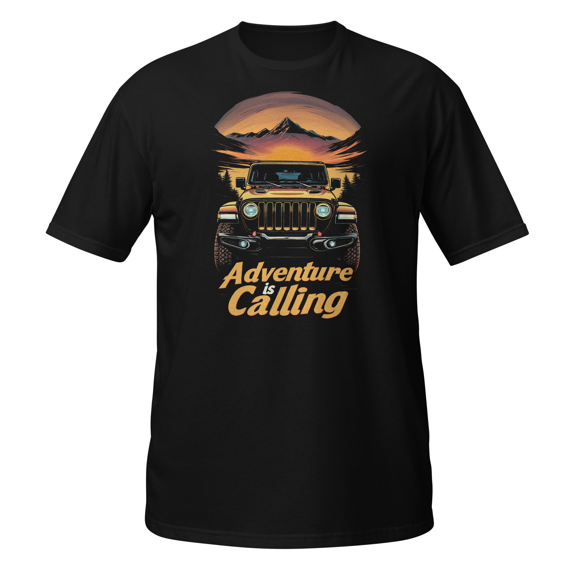 When the golden hour hits the mountain peaks, you know exactly where you belong. The Unisex Sunset Overlanding Graphic Tee is built for those who chase the fading light and know that Adventure is Calling. Featuring a beautifully stylized, front-facing golden off-road rig bathed in the warm glow of a setting sun, framed by sharp mountains and dark pine tree silhouettes. This high-contrast vector design speaks to the soul of the true trailblazer. This graphic tee connects you instantly to the peaceful yet rugged overlanding lifestyle.